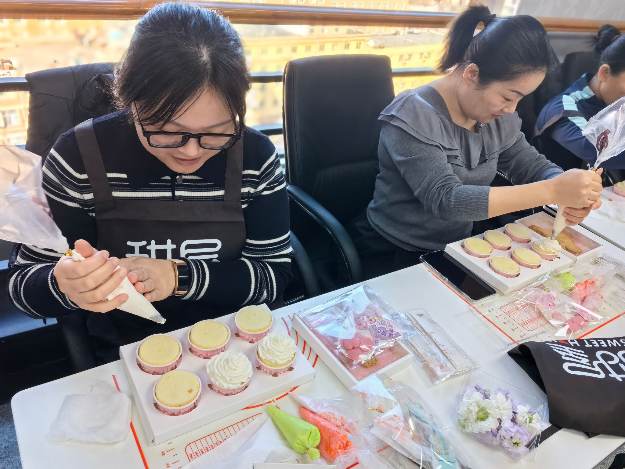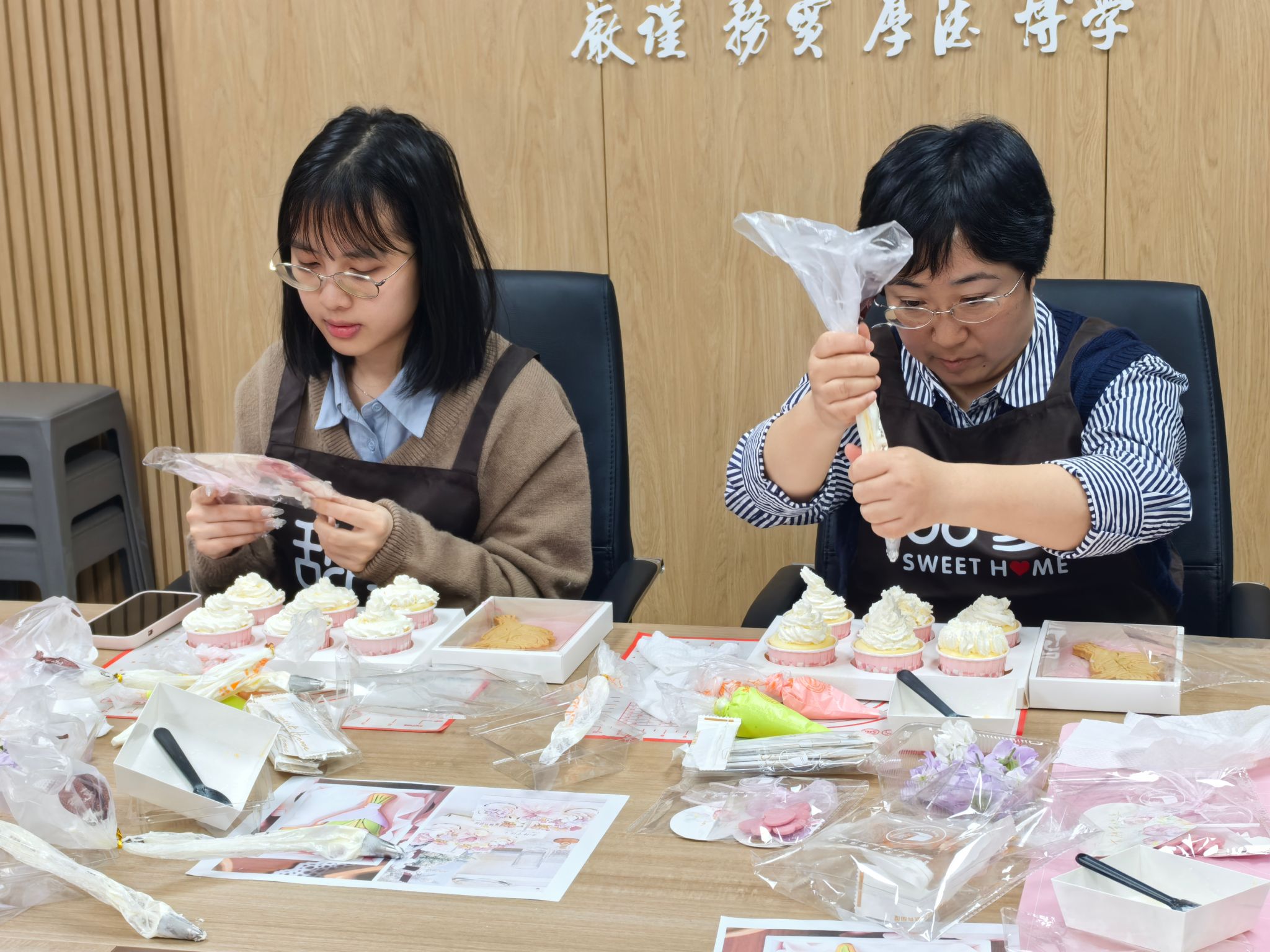 活动伊始,专业面点师向大家讲解了烘焙食材搭配、裱花技巧,演示了制作步骤。随后在师傅的指导和示范下,女教职工们纷纷化身心灵手巧的“甜点大师”,开启了属于自己的烘焙时光。现场气氛融洽,欢声笑语不断。大家充分发挥想象力和创造力,制作风格不同的烘焙作品。每一件作品都承载着女教职工们的心意与创意,也凝聚着大家对生活的热爱。大家手捧着自己的劳动成果,脸上洋溢着幸福与自豪的笑容,纷纷拍照留念,记录下这一甜蜜美好的时刻,分享着烘焙带来的快乐与成就感。