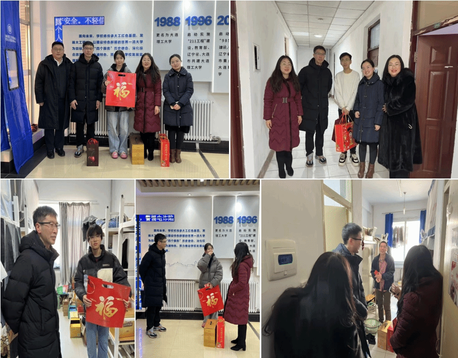 院长吴玉虎、党委副书记兼副院长高兰以及全体在连辅导员一行走访日本a片5名留校学生宿舍,看望留校学生,在新春佳节来临之际为同学们送上暖心关怀和新春问候。