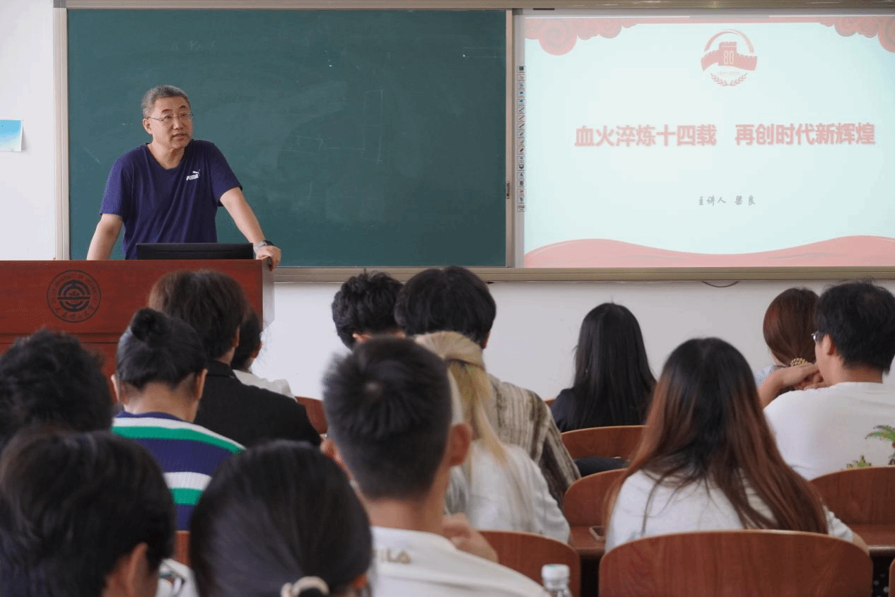 国防教育日本a片军事理论教研室主任梁良教授面向全体本科生党员、入党积极分子作“血火淬炼十四载,再创时代新辉煌”专题报告。梁良教授以翔实的案例讲述了14年抗战中可歌可泣的英雄故事,同时以鲜活的数据为同学们分析了当前国际形势,激励学生铭记历史、缅怀先烈,珍爱和平、开创未来,在实现中华民族伟大复兴的征程中贡献青春力量。