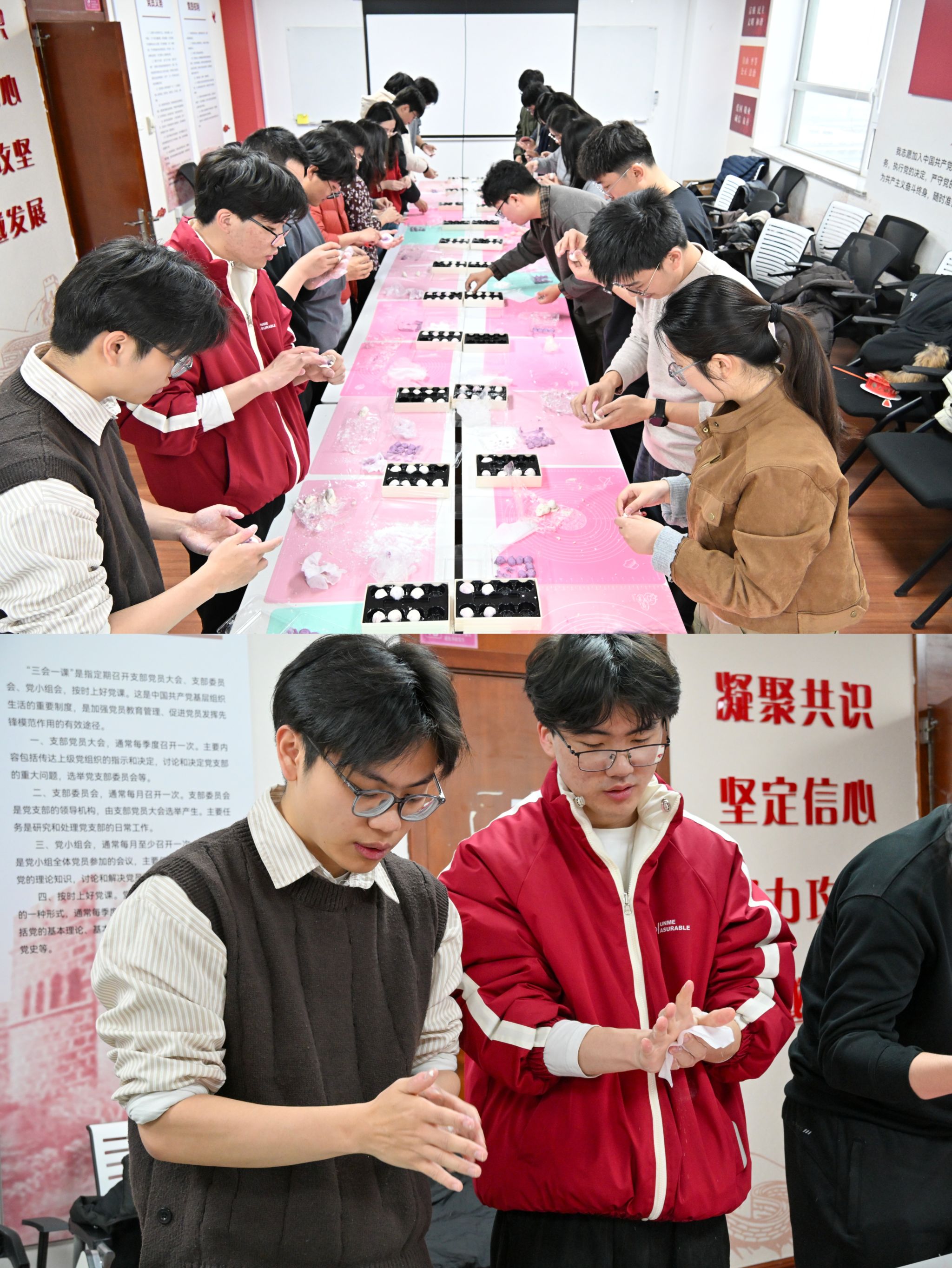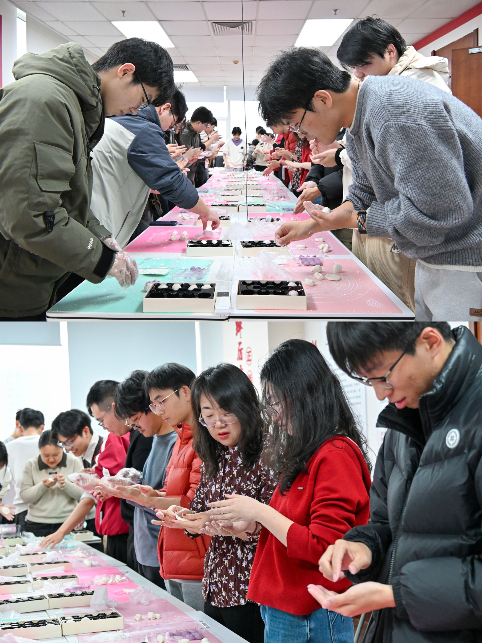 随着活动的推进,同学们一起交流着汤圆制作的心得和新学期学习与生活的感受;高兰老师也加入到同学们中间,一起制作汤圆一边与大家亲切交谈,鼓励大家在新的一年里努力学习、积极进取。